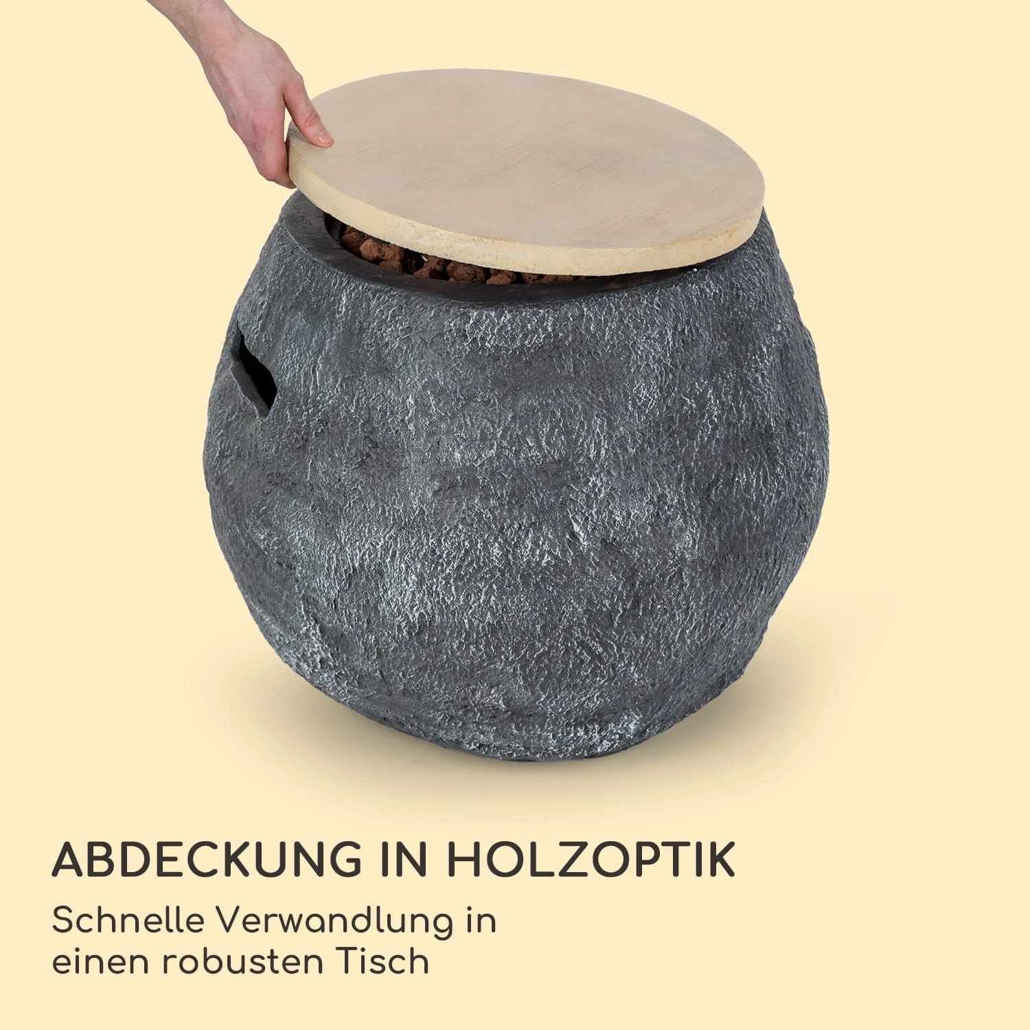 Leistungsstarke Gas-Feuerstelle für Romantik und natürliche Wärme in Outdoor-Oasen: Die blumfeldt Andros Gas-Feuerstelle verbindet rustikale Schönheit mit komfortabler Funktionalität.