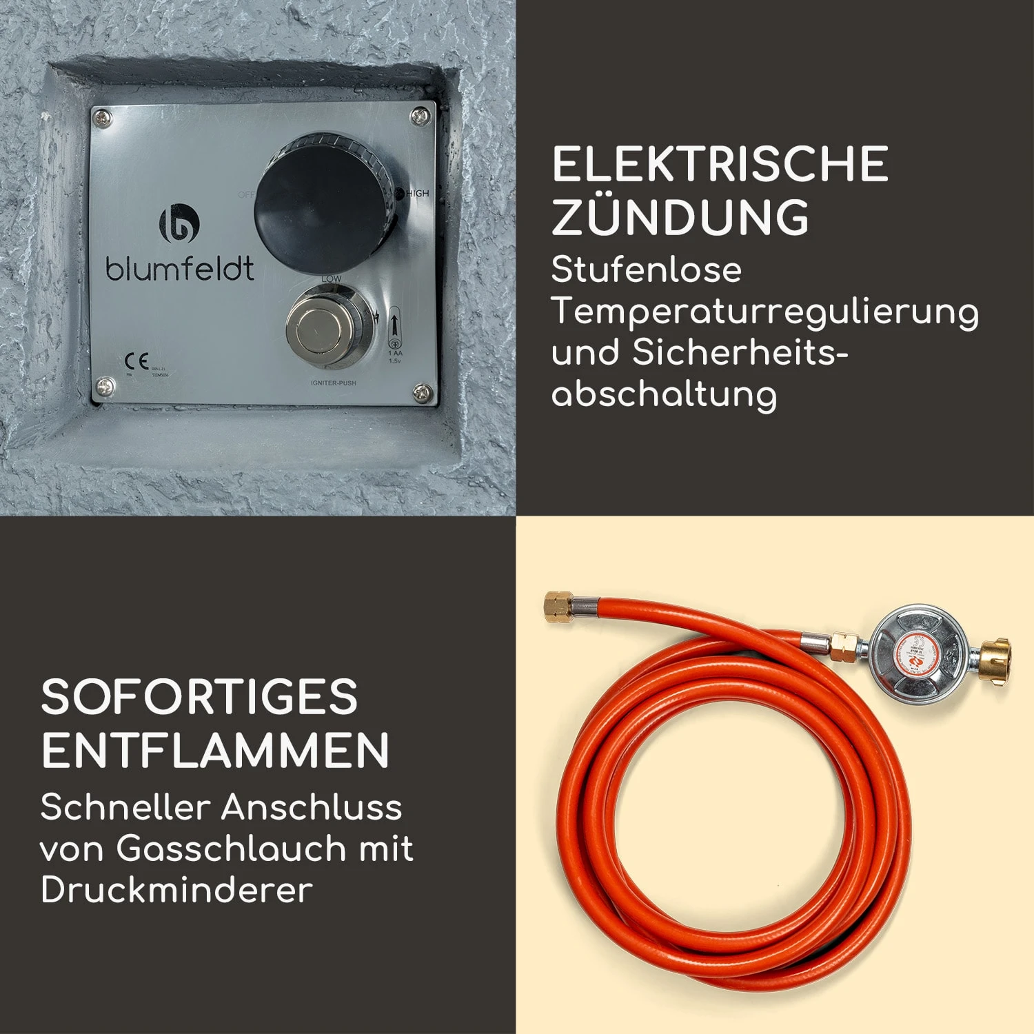 Leistungsstarke Gas-Feuerstelle für Romantik und natürliche Wärme in Outdoor-Oasen: Die blumfeldt Andros Gas-Feuerstelle verbindet rustikale Schönheit mit komfortabler Funktionalität.