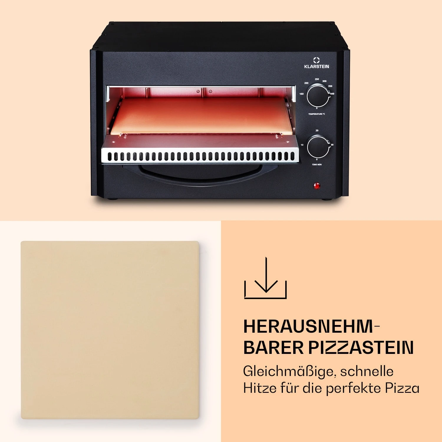 - herausnehmbarer 12″ Pizzastein (ca. 30 cm)