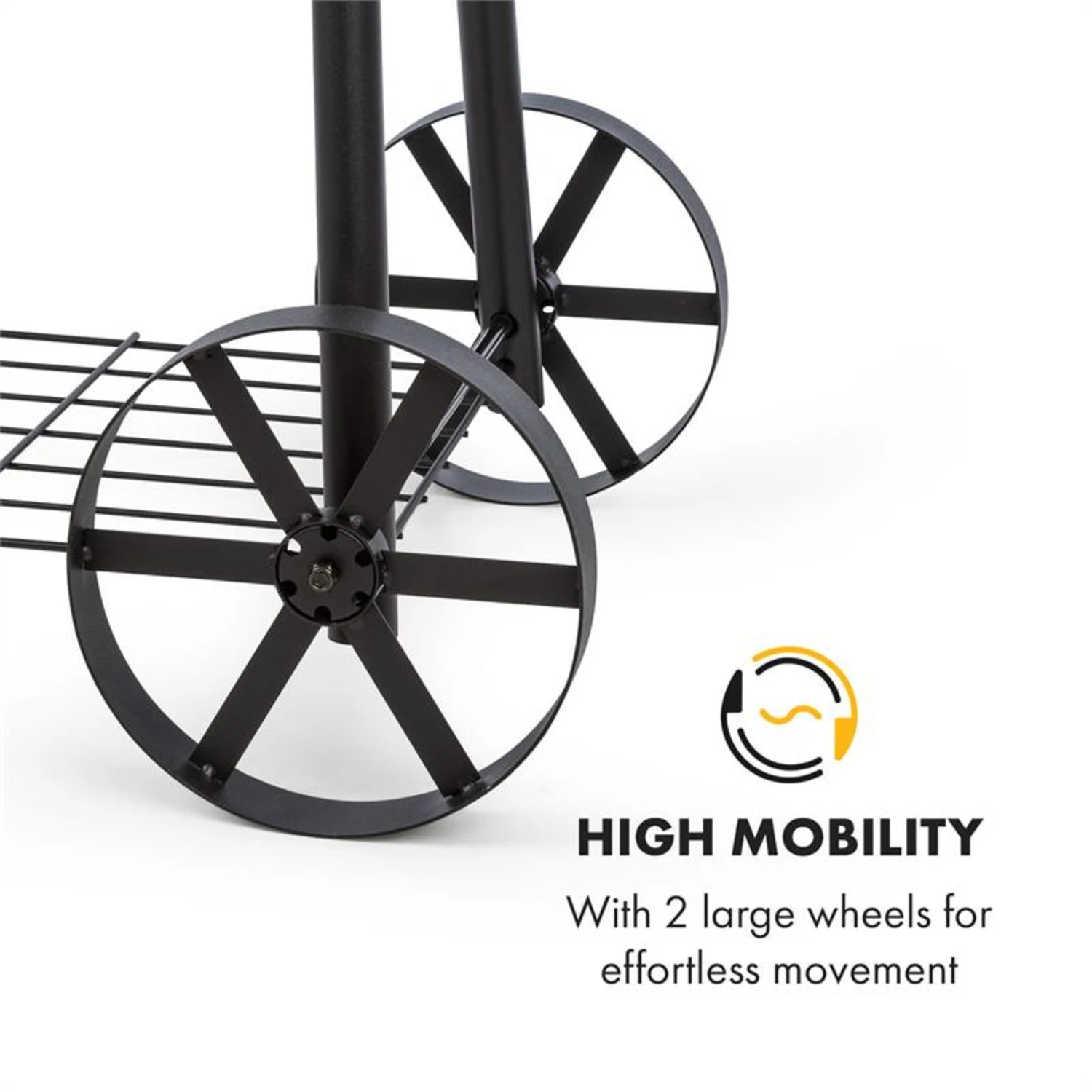 Sein robustes Gestell bietet dem Grill einen sicheren Stand und hebt ihn in eine angenehme Arbeitshöhe, mithilfe der beiden angebrachten Bodenrollen lässt er sich zudem mühelos bewegen.