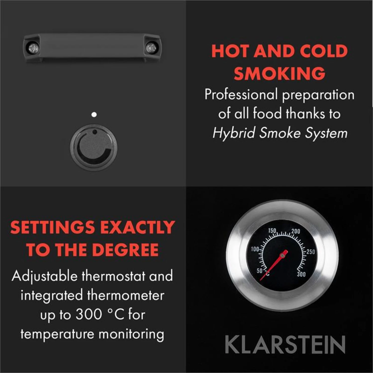 Delikate Rauchzeichen: Wenn im Klarstein Flintstone Smoker aromatischer Rauch aufsteigt, dann wird es daheim köstlich! Im würzig-feinen Holzrauch garen Fleisch, Fisch und Würste, aber auch Tofu oder Gemüse zu edlen Spezialitäten. Und mit seiner Fronttür aus schwarzem Edelstahl versprüht er schon beim Räuchern rustikalen Charme.