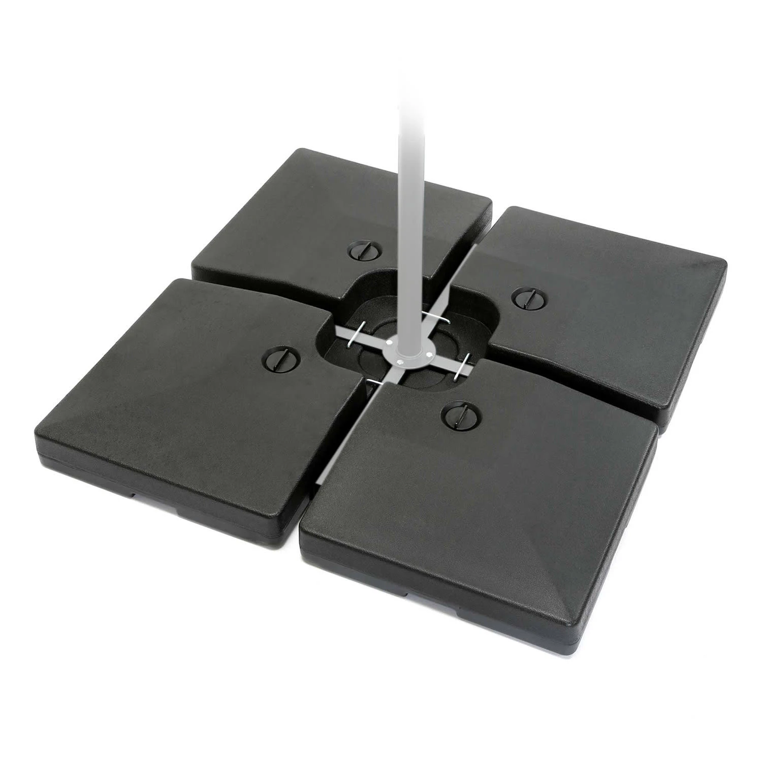 Neben ihrer zuverlässigen Funktion als Beschwerungselemente überzeugen die Sonnenschirmständer-Gewichte auch in Optik und Komfort. Sie passen sich geschickt an das Bodenkreuz deines Schirmständers an und ergeben so einen modernen Sockel. Ein seitlicher Tragegriff macht die Leergewichte zu einem sehr praktischen Sommer-Accessoire.