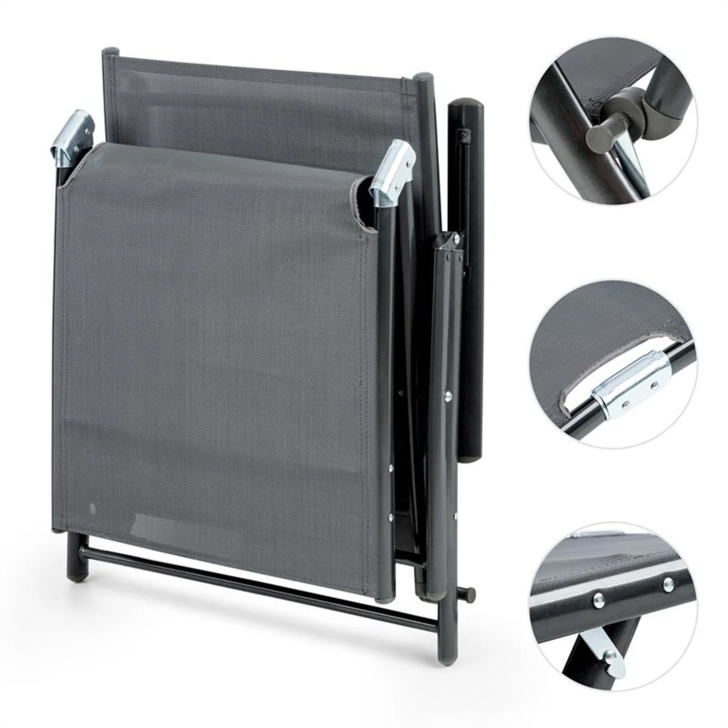Mit der Blumfeldt Modena Gartenliege bequem Sonne tanken. Dank robustem Polyester-Gittergewebe ruhen Sie auf der 1,7 m lange Sitz- oder Liegefläche wie auf Wolken. Damit sie allen Ansprüchen gerecht wird, kann die Rückenlehne in 7 Positionen von sitzend bis liegend befestigt werden – ganz nach persönlichem Geschmack. Das farbechte Gitter-Gewebe ist witterungsbeständig und trocknet besonders schnell ab. So ist die Liege jederzeit für das Sonnenbad einsatzbereit. Bei allem Luxus zum Seele baumeln lassen, kommt auch der langfristige Nutzwert nicht zu kurz: Das Gestell ist äußerst stabil aus einer Kombination von Stahl- und Aluminiumrohren gefertigt. Eine Pulverbeschichtung der Metallteile sorgt für zusätzliche Witterungsbeständigkeit und lässt sich leicht reinigen.