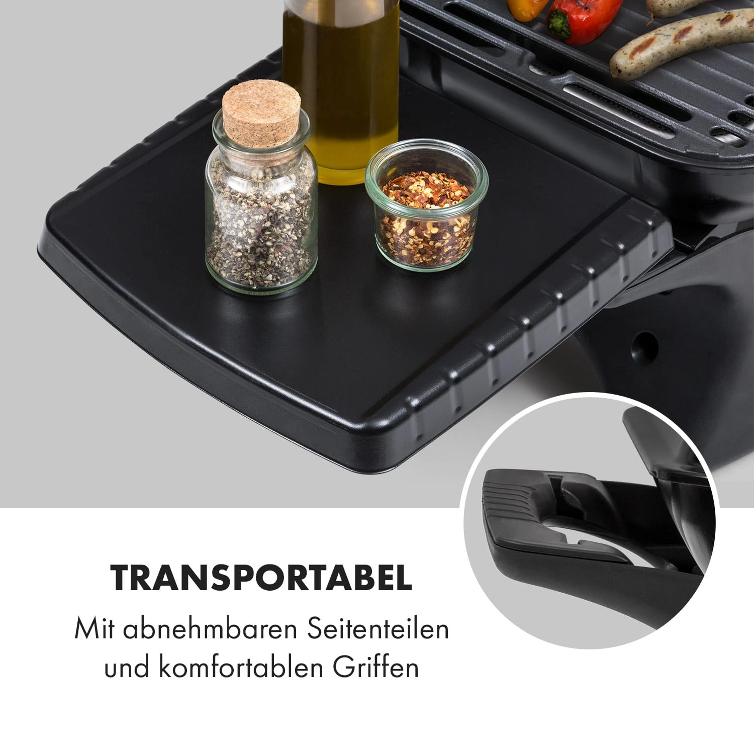 Um höchste Mobilität zu ermöglichen, lassen sich die Seitenteile in Sekundenschnelle abnehmen. Der Gasgrill kann nun mit Hilfe seiner großzügigen Griffen komfortabel getragen werden und findet überall im Außenbereich schnell einen Aufstellort.