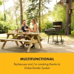 Mit einem Drehspieß, einem Grillrost sowie stabilen Standbeinen aus Edelstahl ist der Klarstein Sauenland Pro XL Spanferkelgrill nicht nur besonders hochwertig, sondern dank glatter Oberflächen auch besonders leicht zu reinigen. Sein verschließbarer Garraum ermöglicht dank guter Wärmeisolation eine lange Garzeit bei niedrigen Temperaturen und und eignet sich dadurch sowohl zur Zubereitung saftig-weicher Spanferkel, Brathähnchen und Braten als auch für Slow Cooking Spezialitäten wie Pulled Pork. Durch vier Rollen mit zwei integrierten Bremsen lässt sich der Holzkohlegrill trotz seines Qualtitäts-Gewichts und der hohen Standfestigkeit sehr leicht befördern: etwa von der Garage in den Garten oder vom Geräteschuppen auf die Terrasse.
