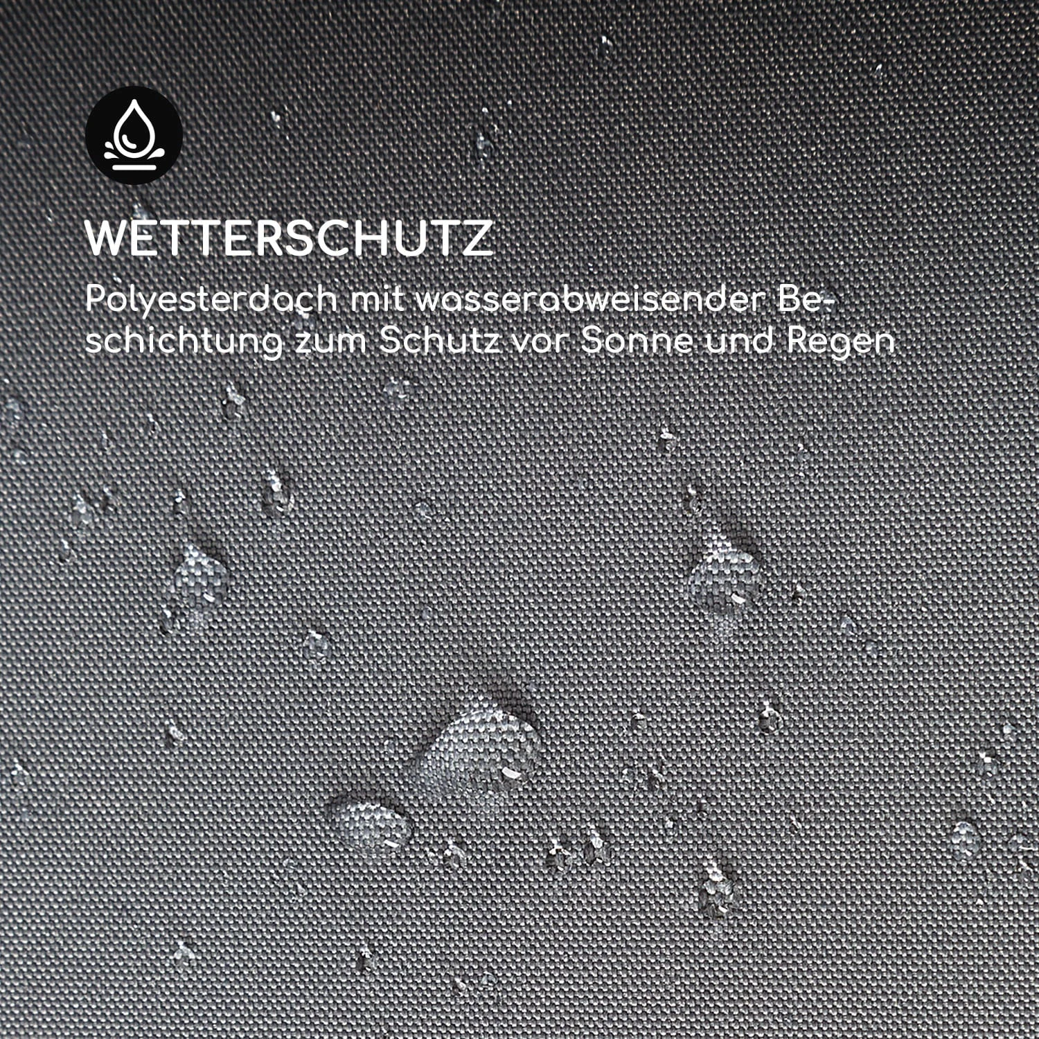 - Material Sonnendach: 180 g/m² Polyester mit wasserabweisender Beschichtung